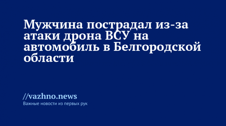 Мужчина пострадал после удара дрона Вооруженных сил Украины (ВСУ) по автомобилю в городе Грайвороне Белгородской области, об этом 12 ноября сообщил губернатор Вячеслав Гладков.