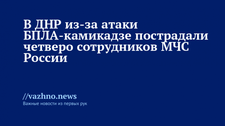 Пресс-служба МЧС России 12 ноября сообщила, что в Донецкой Народной Республике (ДНР) в результате атаки беспилотника-камикадзе были ранены четыре сотрудника ведомства.