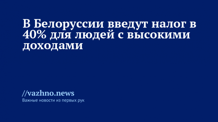 12 ноября глава Министерства финансов Белоруссии Юрий Селиверстов сообщил о предложении ввести новую максимальную ставку подоходного налога в размере 40% для годовых доходов свыше 600 тыс. белорусских рублей (примерно $200 тыс.).