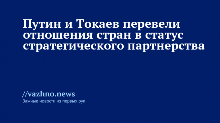 Отношения РФ и Казахстана обрели статус стратегического партнерстваПо итогам переговоров в Москве был подписан пакет из 14 документов. В числе соглашений — программа экономического сотрудничества до 2030 года, договоренности в области транспорта, космических технологий, экономики и здравоохранения. Среди прочего страны согласовали открытие российского генерального консульства в Актау и завоз амурских тигров из РФ в Казахстан.