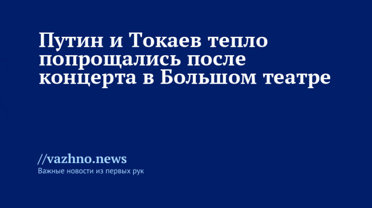 Президенты России Владимир Путин и президент Казахстана Касым-Жомарт Токаев тепло попрощались после гала-концерта мастеров искусства Казахстана, который прошел в Большом театре. Об этом 12 ноября сообщила пресс-служба казахстанского лидера.