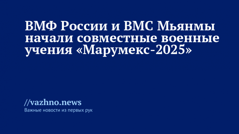 Военно-морской флот России (ВМФ) и военно-морские силы Мьянмы (ВМС) приступили к совместным военным учениям «Марумекс-2025». Пресс-служба Тихоокеанского флота сообщила об этом 13 ноября.