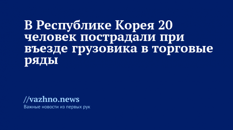 В Пучхоне в Республике Корея при въезде грузового автомобиля в торговые ряды пострадали 20 человек. Об этом 13 ноября сообщил телеканал KBS.