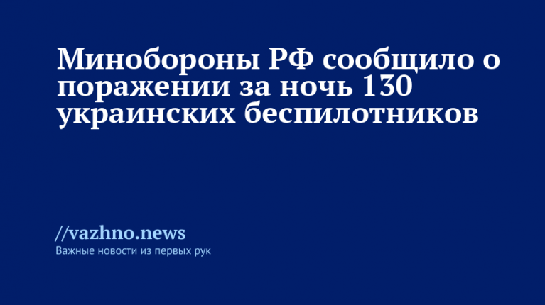 «В период с 23:00 мск 12 ноября до 8:00 13 ноября дежурными средствами ПВО перехвачены и уничтожены 130 украинских беспилотных летательных аппаратов самолетного типа», — говорится в сообщении в Telegram-канале ведомства.