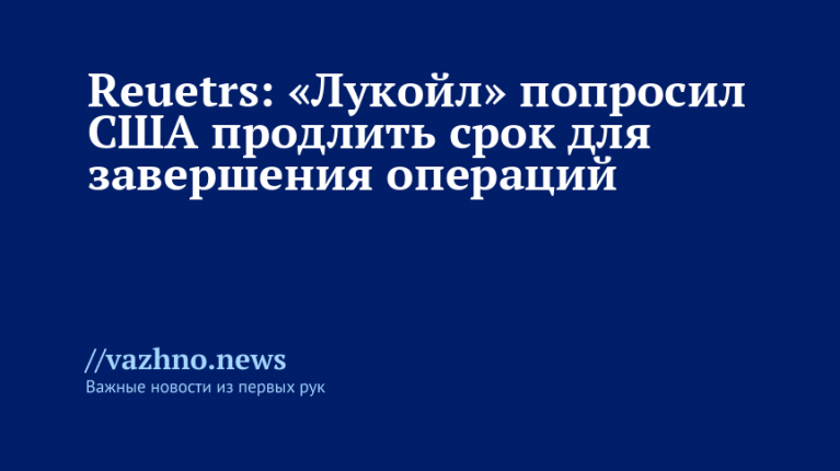 Компания «Лукойл» направила властям США запрос о продлении срока, который установил американский минфин для завершения операций с компанией и который истекает 21 ноября. Со ссылкой на источники, знакомые с ситуацией, агентство Reuters сообщило об этом 12 ноября.