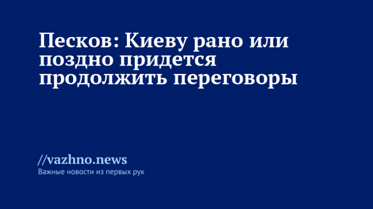 Песков: Киеву рано или поздно придётся возобновить переговоры