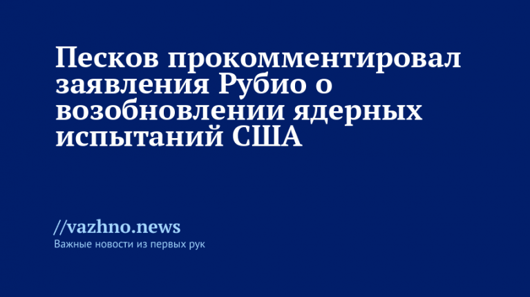 «Если считать это подтверждением того, что США выходят из запрета на испытания, то тогда это подтверждение вот этих намерений», — сказал Песков, комментирую заявления госсекретаря США Рубио о возобновлении ядерных испытаний.