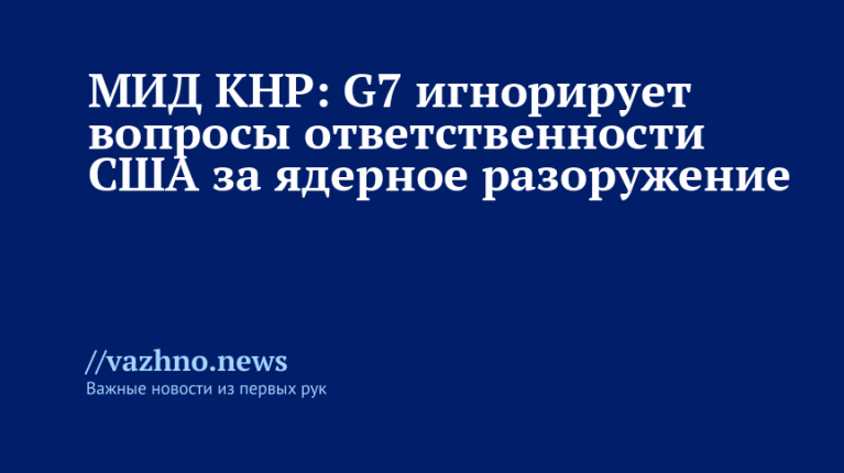 Страны «Большой семерки» (G7: Великобритания, Германия, Италия, Канада, США, Франция и Япония) по словам официального представителя МИД КНР Линь Цзянь уклоняются от обсуждения ответственности Вашингтона в вопросах ядерного разоружения. Заявление было сделано 13 ноября представителем китайского внешнеполитического ведомства.