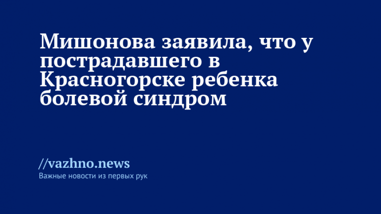 13 ноября детский омбудсмен Подмосковья Ксения Мишонова сообщила, что у ребенка, пострадавшего при взрыве в Красногорске, по-прежнему отмечается выраженный болевой синдром.
