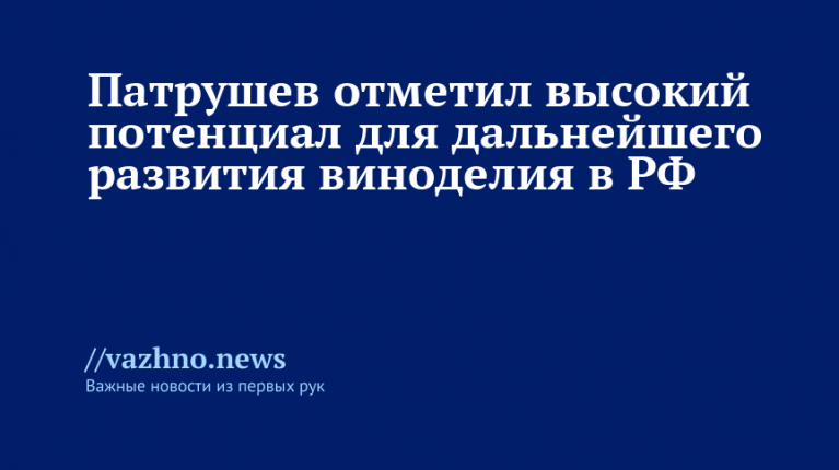 13 ноября заместитель председателя правительства РФ Дмитрий Патрушев сообщил, что у России имеется значительный потенциал для дальнейшего развития винодельческой отрасли.