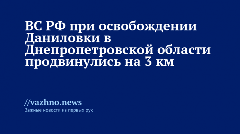 Вооруженные силы (ВС РФ) при освобождении населенного пункта Даниловка в Днепропетровской области продвинулись вглубь обороны на 3 км. Минобороны РФ сообщило об этом 13 ноября.