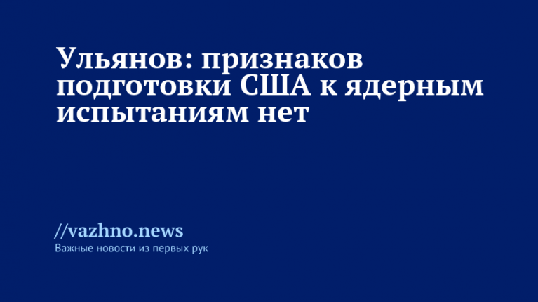 Постоянный представитель России при международных организациях в Вене Михаил Ульянов 13 ноября заявил, что в настоящее время отсутствуют какие‑либо признаки того, что США готовятся к проведению ядерных испытаний.