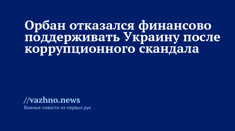 13 ноября премьер-министр Венгрии Виктор Орбан объявил об отказе предоставлять финансовую помощь Украине, сославшись на коррупционный скандал и провокационные действия со стороны украинского лидера Владимира Зеленского.