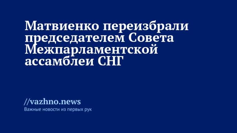 Спикер Совета Федерации (СФ) Валентина Матвиенко вновь избрана на пост председателя Совета Межпарламентской ассамблеи СНГ. Решение было принято единогласно 13 ноября на заседании, которое прошло в Душанбе.
