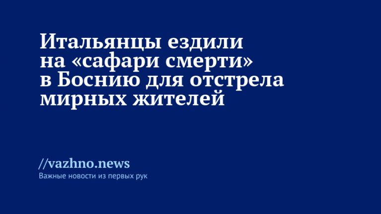 Прокуратура Милана запустила проверку по так называемым «сафари смерти»: появившаяся информация указывает на то, что состоятельные итальянцы в 1990-х годах приезжали в Сараево (Босния и Герцеговина), чтобы стрелять по мирным жителям. Освещению событий поспособствовал журналист Эцио Гаваццени. Подробности инцидента и возможные уголовные последствия для участников таких поездок — в материале «Известий».