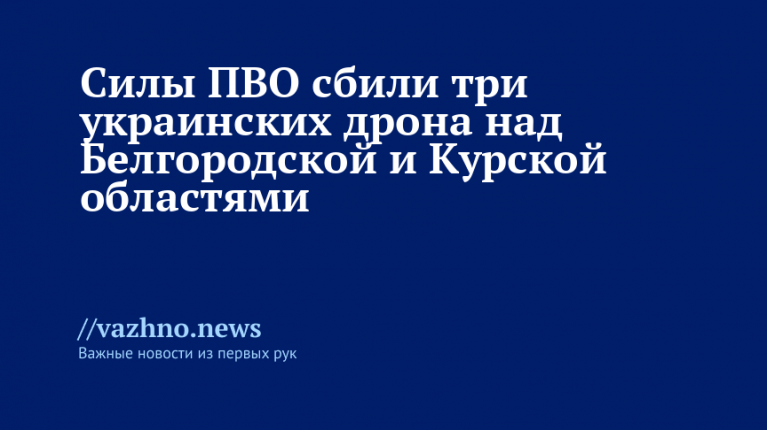 Два БПЛА были поражены над территорией Белгородской области, еще один аппарат сбит над Курской областью.