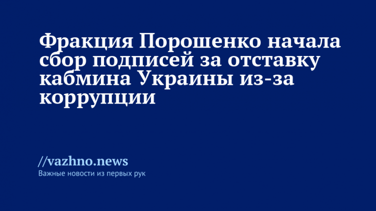 Политическая сила Украины «Европейская солидарность» с бывшим президентом Украины Петром Порошенко (входит в объединение, внесенное Росфинмониторингом в список причастных к экстремистской деятельности или терроризму) заявила о начале кампании по сбору подписей депутатов Верховной рады с требованием отставки всего состава кабинета министров на фоне развернувшегося коррупционного скандала. Об этом в партии сообщили 13 ноября.