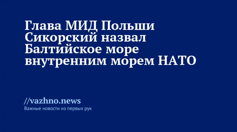 По мнению главы польского МИД Радослава Сикорского, 13 ноября Балтийское море в последние годы якобы почти стало внутренним морем НАТО. Об этом 13 ноября сообщил министр иностранных дел Польши Радослав Сикорский.