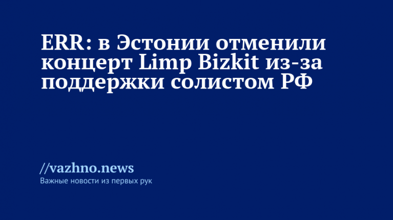 Телерадиокомпания ERR 13 ноября сообщила, что концерт американской рок-метал-группы Limp Bizkit, запланированный на май 2026 года в Таллине, был отменен. В сообщении отмечается, что министерство иностранных дел назвало лидера коллектива Фреда Дерста сторонником России.