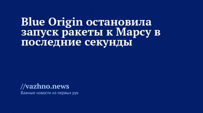 13 ноября стало известно, что аэрокосмическая компания Blue Origin в самый последний момент приостановила запуск ракеты-носителя New Glenn, которая планировалась для доставки аппаратов NASA к Марсу.