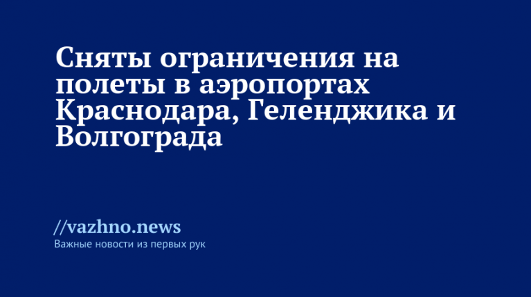 «Аэропорт Краснодар (Пашковский). Аэропорт Геленджик. Сняты дополнительные ограничения на прием и выпуск воздушных судов. Аэропорт Волгоград. Сняты ограничения на прием и выпуск воздушных судов», — написал он в своем Telegram-канале.