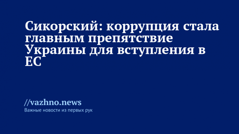 Коррупция способна превратиться в основное препятствие для Украины на пути к вступлению в Европейский союз. Такое мнение 13 ноября высказал министр иностранных дел Польши Радослав Сикорский в эфире телеканала Polsat.