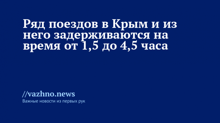 На маршрутах в Крым и в обратном направлении отмечаются задержки нескольких поездов — они опаздывают от полутора до четырех с половиной часов. Об этом 13 ноября проинформировала пресс-служба железно-дорожной компании «Грандсервисэкспресс», сообщив о сложившейся ситуации.