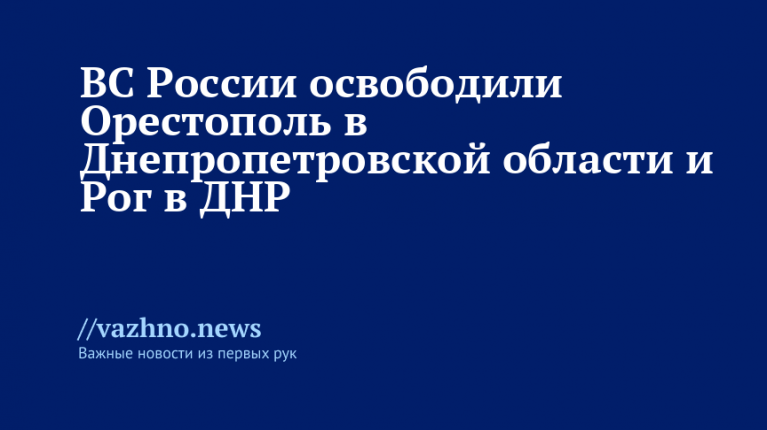 ВС РФ освободили Орестополь (Днепропетровская обл.) и Рог (ДНР)