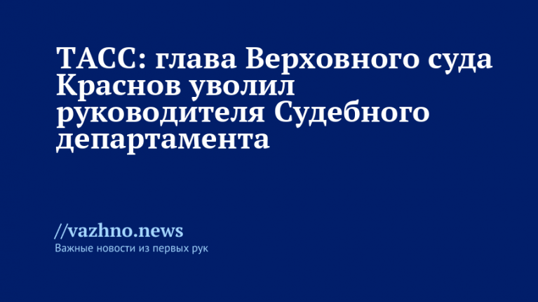 «Генеральный директор Судебного департамента при Верховном суде Российской Федерации Иванов В.А. уволен по решению председателя Верховного суда РФ Игоря Краснова», — рассказал собеседник агентства.
