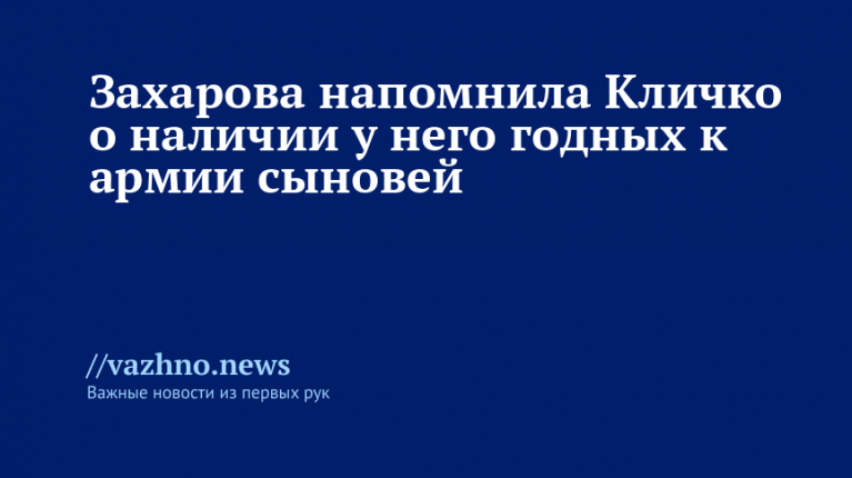 Захарова также задала вопрос, почему городской голова Киева не рассматривает первоочередное решение о призыве собственных сыновей в армию, поинтересовавшись, почему это не кажется ему приоритетным в связи с изменениями в военном наборе.