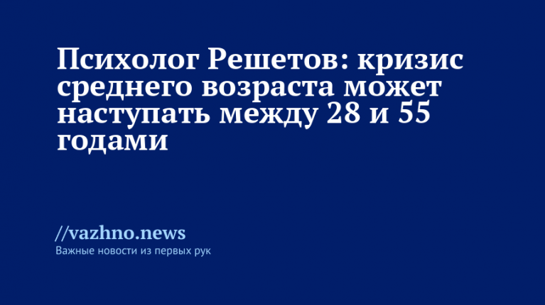 Решетов рекомендовал опираться на условную середину жизненного пути современного человека: по его подсчетам, это примерно 35–45 лет. Важнее не формальный возраст в паспорте, а внутреннее психологическое состояние человека, добавил он.