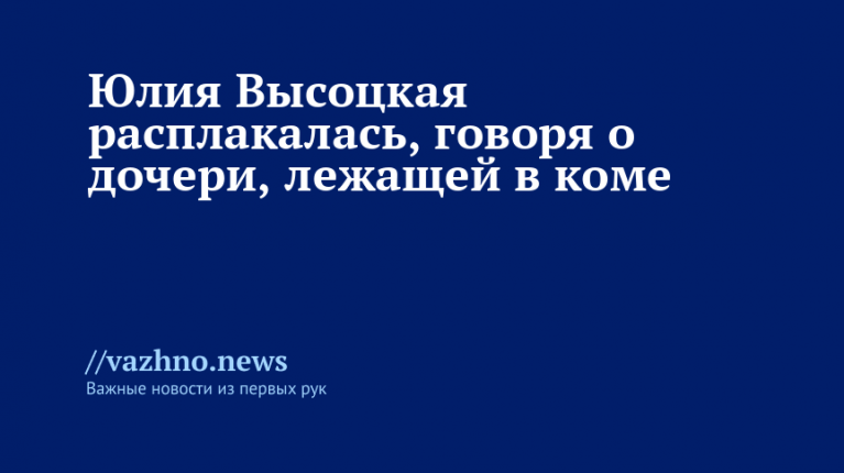 Актриса и телеведущая Юлия Высоцкая в первый раз за 12 лет рассказала о состоянии своей дочери Марии, которая оказалась в коме после дорожно-транспортного происшествия. Об этом она поведала 14 ноября в интервью журналистке Лауре Джугелии, интервью было опубликовано на платформе Rutube.