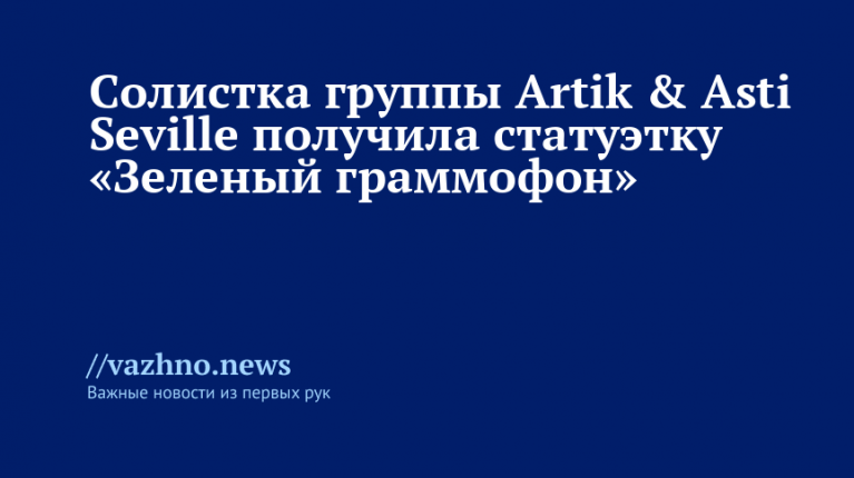 Солистка группы Artik & Asti Seville 14 ноября получила статуэтку «Зеленый граммофон», которая вручалась за вклад в развитие экологической культуры и за популяризацию осознанного образа жизни. Отвечая на вопрос «Известий», она пообещала, что постарается оправдать статус победителя.