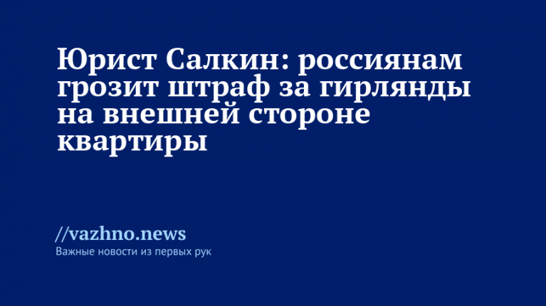 Юрист Салкин: россиянам грозит штраф за гирлянды снаружи квартир