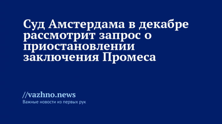 Суд в Амстердаме в декабре рассмотрит приостановку заключения Промеса