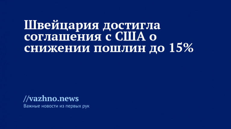 Правительство Швейцарии сообщило о том, что достигло договоренностей с США — Вашингтон согласился сократить введенную ранее 39% пошлину на швейцарский экспорт до 15%. Это заявление было опубликовано 14 ноября в пресс-службе конфедерации.