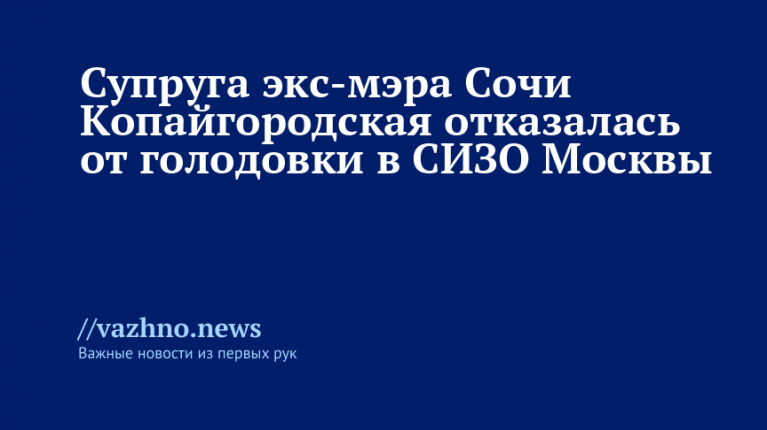 Ранее того же дня адвокаты супруги бывшего мэра Сочи Янины заявили «Известиям», что она объявила бессрочную голодовку в СИЗО. По их словам, такое решение женщина приняла после отказа суда удовлетворить ходатайство о возможности видеться с детьми без каких-либо ограничений.
