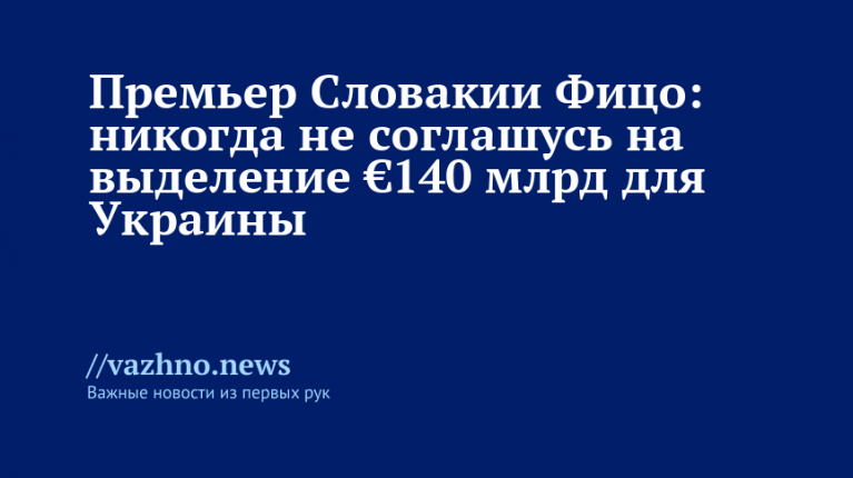 Премьер-министр Словакии Роберт Фицо заявил о своем несогласии с планом Евросоюза по выделению Украине суммы в размере €140 млрд. Политик сделал это заявление 14 ноября во время встречи с учащимися школы в городе Попрад — запись встречи была размещена на видеохостинге YouTube.