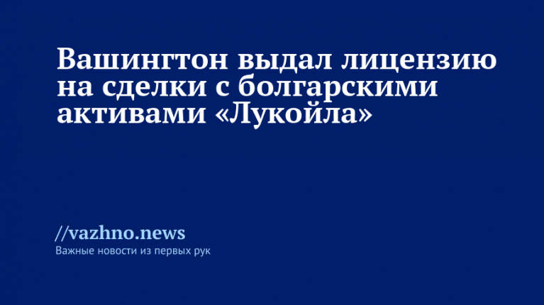 Министерство финансов США предоставило лицензию, которая допускает проведение операций с рядом болгарских предприятий, принадлежащих «Лукойлу». Документ Управления по контролю за иностранными активами (OFAC), размещенный на сайте 15 ноября, дает право на такие сделки до 29 апреля 2026 года.