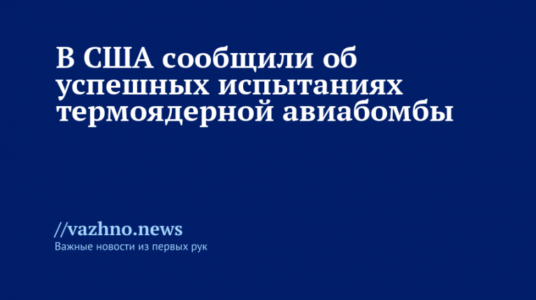В США подтвердили успех испытаний термоядерной авиабомбы