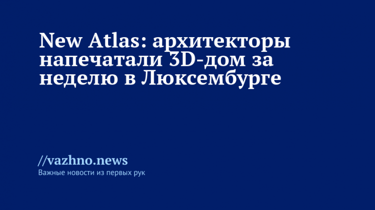 New Atlas: Архитекторы напечатали 3D-дом за неделю в Люксембурге