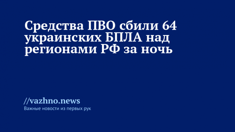 Ночная атака: ПВО России уничтожили 64 украинских беспилотника