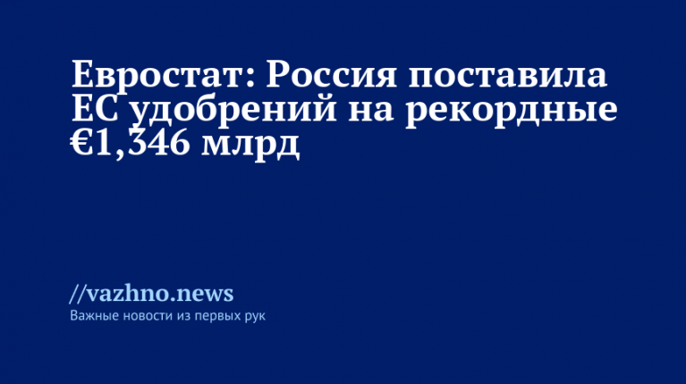 Россия за период с января по сентябрь экспортировала в Европейский союз удобрения на сумму €1,346 млрд — это наибольшая сумма за три квартала начиная с 2022 года. Об этом 15 ноября сообщает «РИА Новости», ссылаясь на данные Евростата.