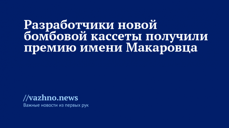 «В номинации «За вклад в области разработки и производства продукции специального назначения» золото досталось разработчикам разовой бомбовой кассеты», — говорится в Telegram-канале.