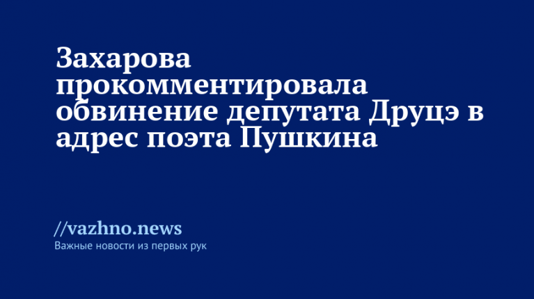 Захарова ответила на обвинение депутата Друцэ в адрес Пушкина