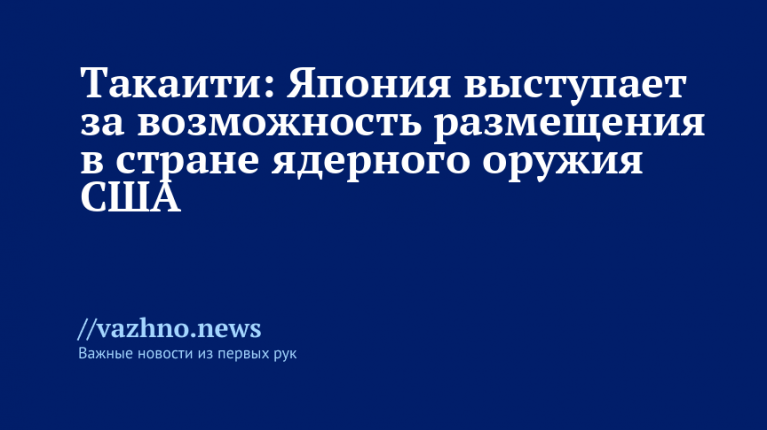 Премьер-министр Японии Санаэ Такаити заявила, что при текущих обстоятельствах Токио должно обсудить возможность размещения у себя ядерного оружия США. Об этом 15 ноября сообщила газета Mainichi.