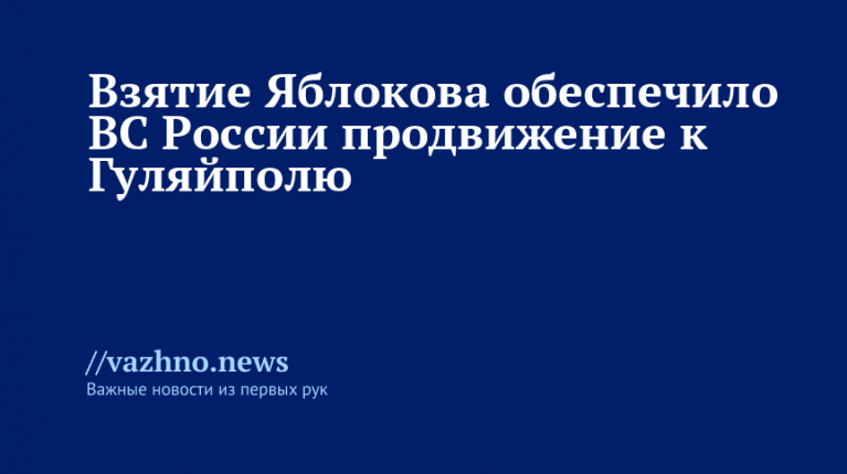 Взятие Яблокова открыло ВС России путь к Гуляйполю