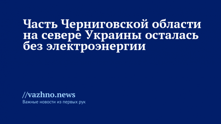 Большая часть Черниговской области на севере Украины осталась без электроснабжения после повреждения одного из энергетических объектов региона. Об этом 15 ноября сообщила компания «Черниговоблэнерго».