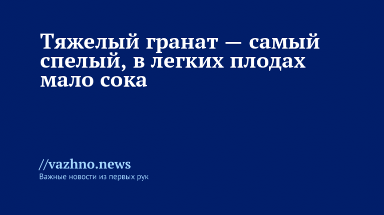 При выборе между несколькими гранатами одинакового размера имеет смысл отдать предпочтение самому тяжелому экземпляру. Легкий плод обычно означает, что зерна не набрали достаточно сока или уже подсохли.