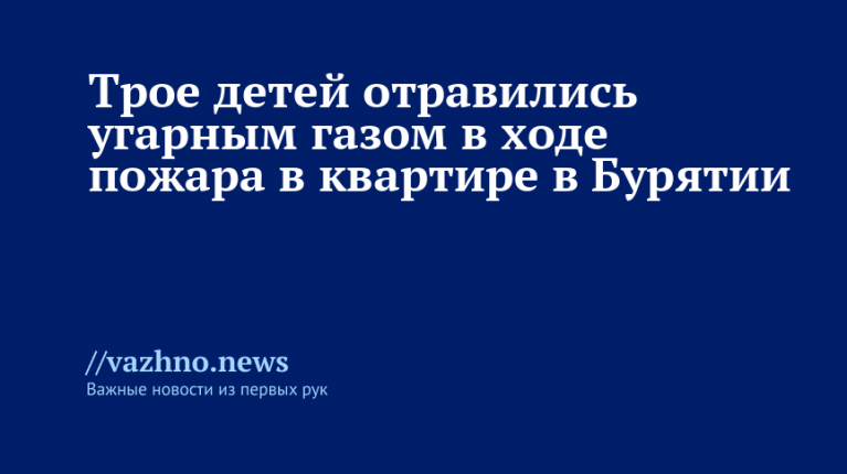 В Улан-Удэ в результате возгорания в квартире на улице Строителей трое детей получили отравление угарным газом. Сообщение об этом 16 ноября опубликовано в Telegram-канале МЧС по Республике Бурятия. Кто пострадал — три несовершеннолетних мальчика; что произошло — пожар в жилом помещении и интоксикация продуктами горения; когда и где — инцидент произошел в квартире на ул. Строителей, о чем информировали 16 ноября; почему — по предварительной версии, причиной стала неосторожность при обращении с огнем; как действовали спасатели — детей вывели и доставили в больницу.